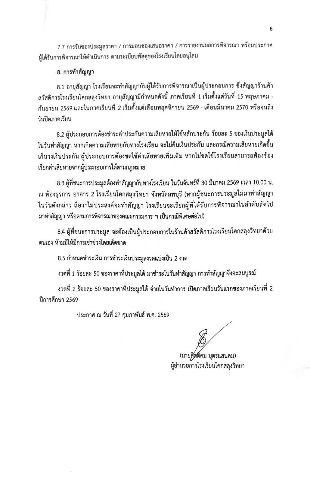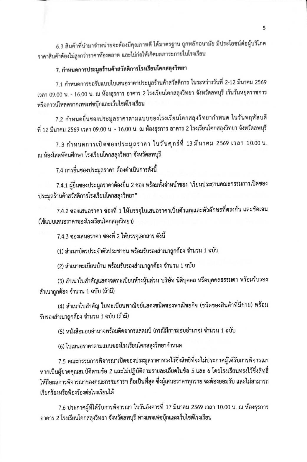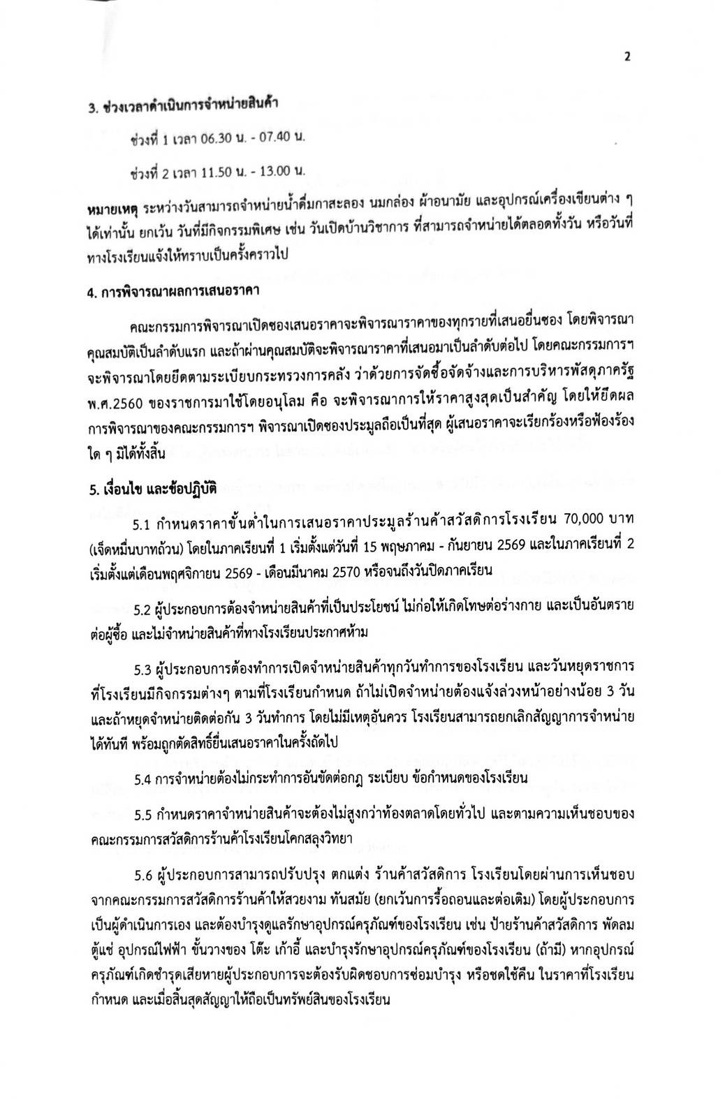 ประชาสัมพันธ ! การเปิดประมูลร้านค้าสวัสดิการโรงเรียน ปีการศึกษา 2569